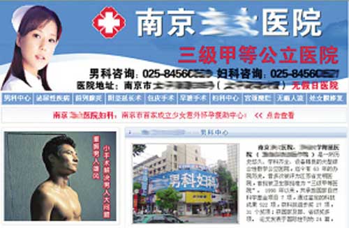 率先發(fā)現(xiàn)這一事情的是某李毅球迷組織,他們的偶像李毅竟然上了南京某性病醫(yī)院的宣傳網(wǎng)站的頭條位置。一則廣告是李毅低垂著腦袋,下面配的文字是“東大男科恢復(fù)您的自信與健康”,而另一則廣告則更加“露骨”,李毅的半身裸照配著“小手術(shù)解決男人大問題,重振男人雄風(fēng)”的文字。某球迷憤憤不平地表示:“這樣的文字,再配上大帝裸露上半身的照片,給人的感覺要么是李毅通過這樣的手術(shù),重振‘雄風(fēng)’的,要么就是李毅成了這家性病醫(yī)院的代言人!”