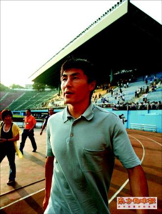 當下半場進行到15分鐘的時候,一名身穿藍色T恤的高個男子出現(xiàn)在運動場的入口,場邊的球迷們眼尖,一眼就認出是李瑋峰,看臺上一陣鼓噪。李瑋峰信步走上主席臺和他熟悉的記者打著招呼,然后一頭鉆進冷氣VIP包廂之中,靜靜地看著場中進行的比賽。這個時候新東家武漢隊處在落后之中,苦無追平的辦法。