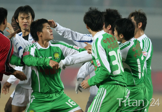 2比2本應(yīng)和局收場,但京津兩隊(duì)賽后的斗毆卻讓平淡的比分不再平淡。如果說整個(gè)沖突的導(dǎo)火索是裁判的判罰的話,那么賽后斗毆的捻子則是譚望嵩與郭輝的身體沖撞,正是他們兩人的沖突使得整個(gè)體育場變成了斗獸場。賽后,平靜下來的郭輝表示,他與譚望嵩沒有什么恩怨,但是球場上譚望嵩說“弄死他”讓他覺得這口氣實(shí)在咽不下去。