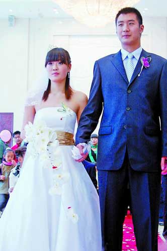 昨天,兩位河南的籃球明星在黃河迎賓館喜結(jié)連理,新郎是原國家隊隊員薛玉洋(現(xiàn)在新疆廣匯隊打球),新娘是河南女籃的程誠。兩人原計劃在2008年8月8日奧運會開幕當天大婚,由于訓練、比賽任務繁重,兩人只好提前趁著聯(lián)賽間隙把終身大事給辦了。