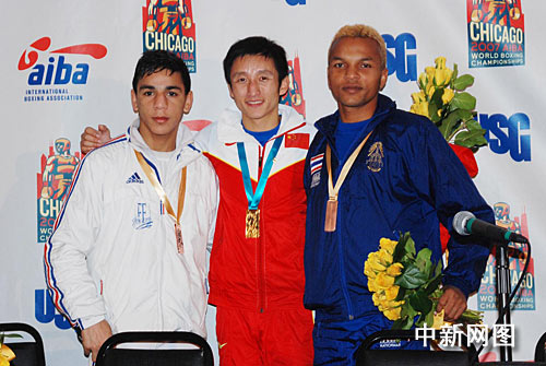 經(jīng)過六場艱苦的比賽,中國明星拳手、上屆中國綿陽世界拳擊錦標賽48公斤級冠軍鄒市明成功衛(wèi)冕,在芝加哥世錦賽上第一個登上了冠軍領(lǐng)獎臺,由國際拳擊聯(lián)合會主席吳經(jīng)國親自為他掛上了本屆比賽的第一枚金牌。