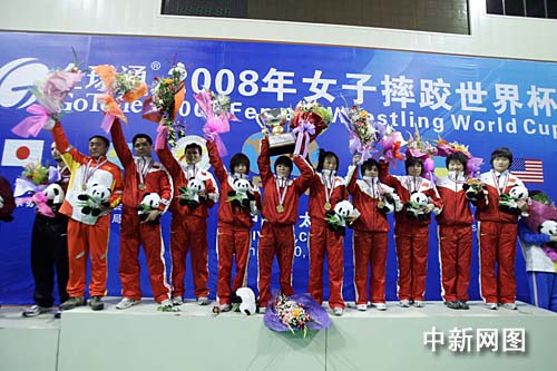 二00八年“全球通”女子摔跤世界杯賽落下帷幕。上屆冠軍中國隊(duì)最終戰(zhàn)勝美國隊(duì),獲得冠軍, 第三名由日本隊(duì)獲得。作者:張?jiān)?/div>