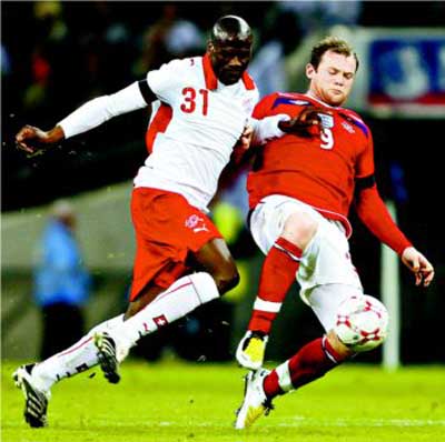 盡管采用了“四五一”的單前鋒陣型,但魯尼獲得的射門機(jī)會并不少,下半時初段他就三次射門,其中一次單刀、一次吊射和一腳遠(yuǎn)射?上(lián)前鋒并非頂級射手,浪費(fèi)了本特利兩次時機(jī)和精準(zhǔn)度都極佳的傳球。第58分鐘,巴內(nèi)塔抓往英格蘭右后衛(wèi)布朗站位的一次失誤直傳其身后,德迪約克乘虛而入,一腳低平的斜射中的,替瑞士扳平了比分,也讓屢屢浪費(fèi)機(jī)會的主隊(duì)受到了懲罰。出人意料的卡佩羅面對失球出奇得平靜,他甚至為年僅19歲的德迪約克鼓掌。