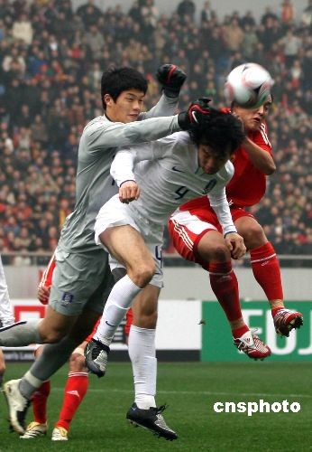 中新社重慶二月十七日電(郭晉嘉 黃金婷) 二00八東亞足球錦標賽今天下午在重慶正式拉開戰(zhàn)幕。剛剛結(jié)束的揭幕戰(zhàn)中,誓言要打破“恐韓”魔咒的中國男足再次遭遇“黑色三分鐘”,在終場約三分鐘被韓國隊攻入制勝一球,二比三惜敗于太極虎,延續(xù)“逢韓不勝”的尷尬局面。