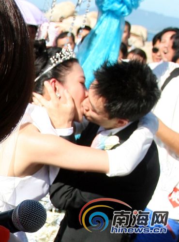背著婚戒的小狗“優(yōu)優(yōu)”和“秀秀”閃亮登場,原來這一主意還是主持人魯豫所提。彼此交換婚戒,新郎深情擁吻新娘,幸福與甜蜜瞬間凝聚。(趙仕芳)