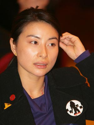 獨自前往的郭晶晶有些孤單,圖為她在為某領(lǐng)導(dǎo)講話勉強鼓掌。