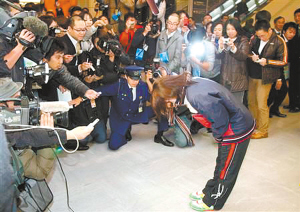 姐弟戀東窗事發(fā)后,中日兩國球迷及媒體的紛紛熱炒讓20歲的福原愛始料不及,12月2日她剛回國下飛機,就有六十多名記者將她團團圍住,爭先恐后地就二人戀情大聲發(fā)問。福原愛只得向記者們深深鞠躬致歉,眼含熱淚。