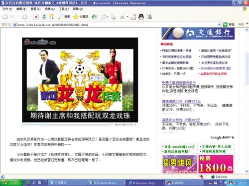 新快報(bào)記者在新浪播客欣賞到這首出爐不久的MV,它翻版于張作龍之《我想找對(duì)象》,說的是一個(gè)叫張作龍的農(nóng)民兄弟主動(dòng)請(qǐng)纓當(dāng)國(guó)足的主教練,他自稱從小鍛煉了發(fā)達(dá)的叉腰肌,腿上功夫也了得,希望能與謝亞龍合作為中國(guó)足球效命。而他上任后的絕招是把中國(guó)功夫帶入球場(chǎng),保證無往不勝。MV對(duì)謝亞龍、球場(chǎng)暴力以及黑哨等作了批評(píng)。