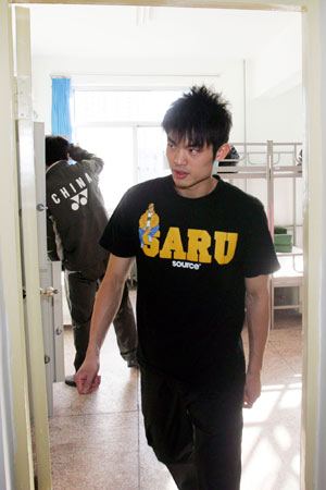 今天下午中國羽毛球隊(duì)來到了北京武警某部駐地,開始為期一周的軍訓(xùn)。由于今日北京地區(qū)大幅度降溫,隊(duì)員們的穿著都十分簡單;径际怯鸾q服加運(yùn)動(dòng)褲。但一向作為時(shí)尚達(dá)人的林丹的穿著卻引起了記者的注意。