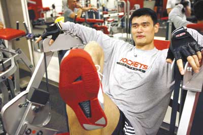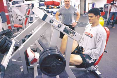 隨著傷勢逐漸好轉(zhuǎn),姚明已開始進(jìn)行恢復(fù)性訓(xùn)練。目前姚明每天都會將很大精力投入在力量器械上,從而保證缺陣期間的各項力量指數(shù)不至于下降,而腿部力量訓(xùn)練則是姚明訓(xùn)練中的重點(diǎn)。