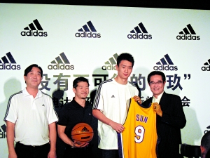 今天上午,阿迪達斯在其全球品牌中心與素有“全能后衛(wèi)”之稱的中國籃球運動員孫悅舉行了簽約新聞發(fā)布會。孫悅下周即將出征NBA,此番加盟阿迪達斯為其踏上國際化征程注入了強心劑。孫悅的加入,令阿迪達斯籃球明星隊伍一再擴大。孫悅在湖人隊的號碼是9號,阿迪達斯也特意選取9月9日9時9分作為簽約發(fā)布會的時間,并以“沒有不可能的‘玖’”作為發(fā)布會主題來強調此次合作的重要意義。作為入選NBA的第一個打外線位置的中國球員,孫悅在NBA聯(lián)盟和湖人隊中將經歷更多的磨練。