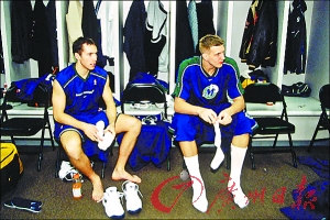 反正在賽前,你絕對(duì)見不到更衣室里人員扎堆的情況。賽場(chǎng)上練完投籃的人,還會(huì)跑到更衣室練點(diǎn)別的;在更衣室里按摩的人,弄完之后也會(huì)跑到賽場(chǎng)上再練會(huì)。而且,大家練習(xí)的時(shí)間也不一樣。有的人練得早,有的人出來得晚,在這樣的情況下,你要看到球員聊天說話,實(shí)在不是一件容易的事情。一般也就一兩個(gè)球員碰到一起,換衣服的時(shí)候、吃東西的時(shí)候,才會(huì)相互聊上兩句。要想在賽前采訪球員,除了等待,還得看運(yùn)氣。