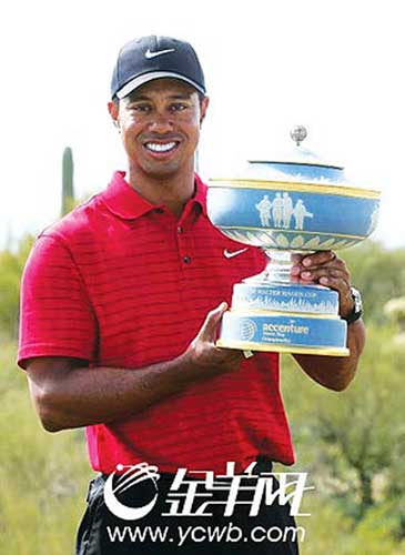 世界高爾夫比洞賽:伍茲擊敗辛克 捧起冠軍獎(jiǎng)杯