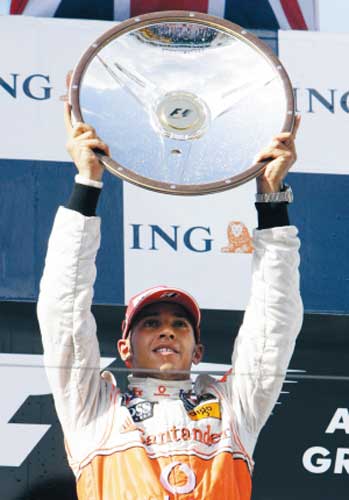 雖然事故頻發(fā),但邁凱輪車手漢密爾頓并未受到混亂形勢(shì)的影響,他駕駛著無TC(牽引力控制系統(tǒng))賽車順利登上了領(lǐng)獎(jiǎng)臺(tái)最高處。