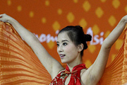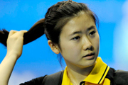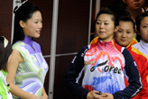 臺(tái)球女子美式8球單打亞軍、韓國選手金佳映,參加頒獎(jiǎng)儀式前,饒有興致地向禮儀小姐學(xué)習(xí)儀態(tài)。