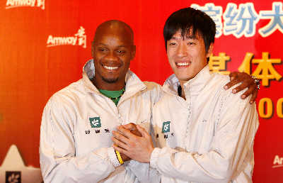 作為安利紐崔萊的代言人,劉翔和鮑威爾曾經一同出現在廣告里,但當時劉翔和鮑威爾都在不同的地方進行拍攝,廣告是經過后期特效組合而成的。此番兩個人一同出現在上海,也參與了安利新廣告的拍攝,“和鮑威爾的合作很有意思,導演要求我們完成一個熱情的擁抱,有那種惺惺相惜的感覺,但很難,我們總是笑場!眲⑾枧c鮑威爾的友情盡在不言中,不過真要把這一切演繹出來,兩個業(yè)余演員就不那么自在了。