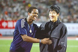 因?yàn)閯⑾璧牡絹?lái),瓦倫西亞的媒體和田徑迷都顯得興奮不已,因?yàn)?0米欄的決賽將不再是羅伯斯一個(gè)人的戰(zhàn)斗。西班牙專業(yè)體育日?qǐng)?bào)《阿斯報(bào)》甚至早早將這場(chǎng)比賽稱作了“一場(chǎng)偉大的對(duì)決”,文章說(shuō),作為世界紀(jì)錄和奧運(yùn)會(huì)金牌、世錦賽金牌的擁有者,劉翔的到來(lái)將讓本屆賽事增色不少。在瓦倫西亞室內(nèi)世錦賽的官方網(wǎng)站上,劉翔與羅伯斯的對(duì)決預(yù)告在首頁(yè)上別樣醒目,“110米欄世界紀(jì)錄保持者和今年室內(nèi)最好成績(jī)創(chuàng)造者,誰(shuí)能打破室內(nèi)世界紀(jì)錄?”據(jù)了解,為了刺激劉翔和羅伯斯在這場(chǎng)對(duì)決中打破世界紀(jì)錄,瓦倫西亞還特意拿出了9萬(wàn)美金作為懸賞,只要有人打破60米欄世界紀(jì)錄,就能獲得這額外的獎(jiǎng)金。