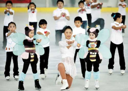 昨天是“六·一”國際兒童節(jié),冰壇伉儷申雪趙宏博特地從加拿大返回深圳的滑冰俱樂部,與俱樂部的學員教練一起舉行了一場為四川地震災區(qū)籌款的義演。據(jù)趙宏博透露,這次義演大概籌集了約140萬的善款。