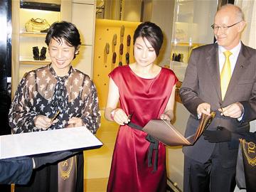 剪彩完畢,在主人的引導下,郭晶晶參觀了這家商店。在一款女式皮包前,TOD’S亞太區(qū)主席對她說:“這與你那個國旗包包是同一款。”