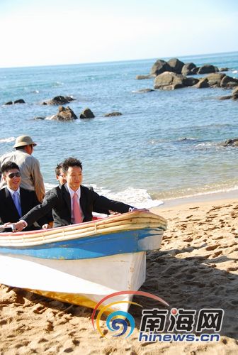 進(jìn)入天涯海角景區(qū)門口,黎家阿妹阿哥跳起了海南特色竹竿舞,新郎新娘也獲邀齊跳吉祥竹竿舞,沒想到平時(shí)在賽場表現(xiàn)游刃有余的體操冠軍楊威竟在此時(shí)顯得木訥笨拙,三步兩步并跳過關(guān),倒是新娘楊云跳得柔美歡快。(趙仕芳)