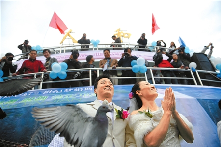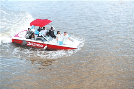 隨后,新郎牽著新娘的手,雙雙登上游艇。新郎正是四川激流回旋隊(duì)教練陳勇,新娘則是奧運(yùn)帆板冠軍殷劍。昨日,這對(duì)幸福的新人,在現(xiàn)場(chǎng)近千人的祝福聲中步入了婚姻的殿堂。自此,享譽(yù)世界的帆板奧運(yùn)冠軍也有了自己幸福的港灣。