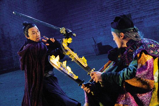《劍雨》講述武功高強(qiáng)的女殺手金盆洗手后,卻因擁有圣物想過(guò)平凡生活而不得,在殺手組織的輪番襲擊下重出江湖的故事。吳宇森說(shuō),他從小就酷愛(ài)武俠片,但命運(yùn)卻讓他拍了槍?xiě)?zhàn)片,“我拍攝的《英雄本色》、《喋血雙雄》都繼承了張徹的風(fēng)格,主人公使用槍就好像武俠片用劍一樣!币虼藰?xiě)?zhàn)片里他也堅(jiān)持讓周潤(rùn)發(fā)們用短槍?zhuān)安坏饺f(wàn)不得已我不會(huì)用機(jī)關(guān)槍?zhuān)驗(yàn)槟鞘侨孔訌椀亩哑鲈斐傻耐Γ嬲膫b客只會(huì)用短槍”。如今在自己的首部武俠片《劍雨》里,吳宇森終于可以放棄火藥拾起冷兵器。在曝光劇照里,拔劍相對(duì)的決戰(zhàn)、飛身相撲的格斗,假如劍替換成槍?zhuān)瑤缀蹙褪恰队⑿郾旧、《喋血雙雄》中的槍?xiě)?zhàn)場(chǎng)面,雙刀的出現(xiàn)更讓人想起周潤(rùn)發(fā)扮演的“小馬哥”的經(jīng)典造型。