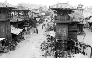 新造出來(lái)的一條街已經(jīng)被《木乃伊3》折騰得滿目瘡痍,到處都是斷壁殘?jiān),滿地爛瓦以及火燒過(guò)的痕跡,兩邊的店鋪和房子都已經(jīng)半倒塌,滿地的戰(zhàn)爭(zhēng)遺跡幾乎達(dá)到了讓人難以插腳的地步,最為壯觀的是街道盡頭的城門(mén)樓子,正面已經(jīng)全部被箭矢所覆蓋,滿地都是攻城用的圓木,還有兩輛攻城戰(zhàn)車(chē)也豎立其中。城墻上,一名老外劇組人員正在加固攻城的云梯,城樓上擺滿了點(diǎn)火用的丙烷桶。