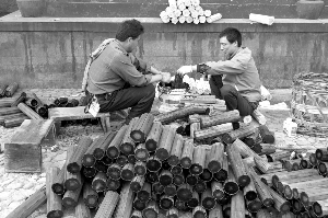 旁邊兩個(gè)工人正在給一些“竹簡(jiǎn)”上色做舊,他們說(shuō)龍帝也將像秦始皇一樣:“焚書(shū)坑儒”!旁邊的書(shū)簡(jiǎn)已經(jīng)制作了一大堆,雖然僅僅是要燒掉的書(shū)簡(jiǎn),但制作非常精良,外層用竹片,里層全是圓形實(shí)木。