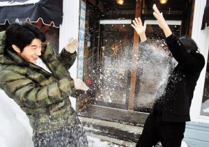 一年一度的圣丹斯電影節(jié)正在如火如荼舉行中,入圍世界劇情片競賽單元的《戰(zhàn)·鼓》主創(chuàng),包括導(dǎo)演畢國智和主演房祖名,23日來到影展的所在地,銀裝素裹的美國小鎮(zhèn)——帕克城。當(dāng)?shù)厣詈竦姆e雪,讓兩位大男人忍不住打起雪戰(zhàn),最后似乎以房祖名落敗告終。