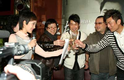 柏林電影節(jié)即將開(kāi)幕,王小帥導(dǎo)演的《左右》入圍主競(jìng)賽單元,昨天主演成泰燊的經(jīng)紀(jì)公司在北京后海某酒吧為成泰燊以及《左右》劇組舉辦了一場(chǎng)餞行會(huì)。