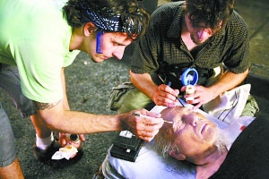 即將上映的《功夫之王》中成龍的80歲老年扮相日前曝光。片方透露,是好萊塢的逼真技藝成就成龍的老人造型。透過縷縷白發(fā)和絲絲皺紋,電影中的成龍老態(tài)畢現(xiàn),足以以假亂真。每天扮相幾個小時,讓成龍吃足了苦頭。