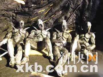 盡管這組劇照中沒能曝光重要角色“短笛大魔王”的造型,但是在擔任劇組特別化妝效果師的好萊塢資深化妝師Edward French 的個人主頁上,卻有一張魔王的“去頭照”。基于保密理由,這張照片在魔王的頭部打上TOPSECRET(最高機密)的標簽。余下的身體部分,乍一看以為是蝙蝠俠造型,但從手臂的肌理來看,確實與《龍珠》原著的短笛的種族特征相去不遠,除了膚色黝黑與原著的綠色有出入之外,恐怕這就是千真萬確的大魔王本尊了。Edward French 還談到,如此耗時的化妝,長達一個半月以來他重復進行著,所幸詹姆斯·馬斯特斯這位專業(yè)的演員十分和善也很配合。