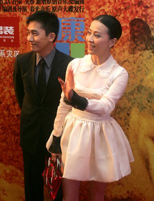 梁朝偉和劉嘉玲昨晚被問及婚事時都笑而不語。早報記者 史訓鋒 實習生 王浩然 圖