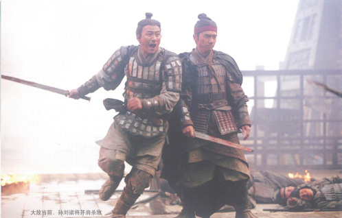 從記者的角度來看,戰(zhàn)爭場面的確比較血腥,殺戮鏡頭很多,而吳宇森風格的慢鏡頭和色彩運用則多少以“美感”中和了“暴力”。盡管是第一次拍古裝大片,但吳宇森充分消化了中國古代戰(zhàn)爭中的智慧:有點像當代團體操的八卦陣、破馬陣的狼牙棒、趙云的“空手套白狼”、張飛的獅吼、關羽的一夫當關,再加上搖著羽扇的諸葛亮和表情鎮(zhèn)定的周瑜穿插其中,極富節(jié)奏的鏡頭調度讓戰(zhàn)爭場面血肉豐滿。