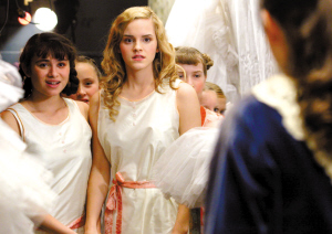 《芭蕾舞鞋》由BBC制作,作為一部明顯帶著英國(guó)古典風(fēng)的小制作影片,美國(guó)人這次給出一周的上映期已經(jīng)足顯誠(chéng)意。顯然,他們只是沖著赫敏!作為好萊塢最紅的“童星”,片里片外都是一口地道倫敦腔的愛(ài)瑪·沃森這幾年屢屢登上美國(guó)的報(bào)紙頭條和雜志封面。只是,她卻總是以學(xué)業(yè)為名,拒絕好萊塢伸出的橄欖枝,好在美國(guó)人并不計(jì)較她的態(tài)度。事實(shí)上,所有的哈利迷只想解開(kāi)一個(gè)謎題:離開(kāi)了《哈利·波特》的光環(huán),愛(ài)瑪還那么叫人著迷嗎?