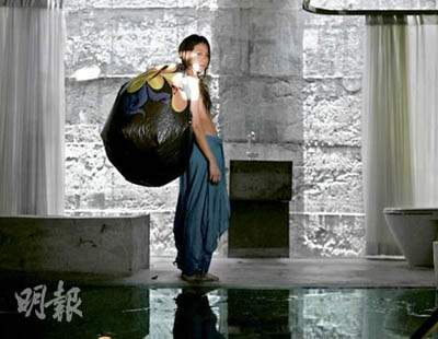 為了表達“花與女孩”的主題,林嘉欣裸露上半身,只以長發(fā)遮掩胸部,照片的確很有味道,一點色情感覺都沒有。圖片均來自香港《明報》。