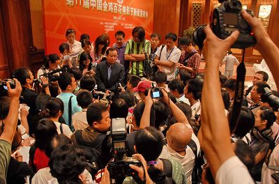 第17屆金雞百花電影節(jié)的新聞發(fā)布會昨日上午舉行。通常而言,這場發(fā)布會是電影節(jié)組委會通報電影節(jié)工作進度,并接受媒體對于電影節(jié)以及評獎工作提出意見和建議的“常規(guī)動作”。但因為《滿城盡帶黃金甲》單方面在46年百花獎歷史上首開“退賽”先河,發(fā)布會忽而成為昨日最重要的新聞事件。而就在中國電影家協(xié)會常務(wù)副主席康健民“被迫宣告”《黃金甲》退賽之前,他正在闡述由于存在黑箱操作、惡意投票等問題,近兩屆的大眾電影百花獎才開始“改革”,增設(shè)101位現(xiàn)場評委。如今,《黃金甲》又一次“鉆”了百花評選規(guī)則的漏洞,康健民承諾說:“我們考慮再修改評選規(guī)則,研究‘退出機制’!