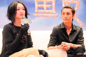 《畫皮》早前曝光了不少陳坤和趙薇的親密戲照片,昨日記者的問題基本都奔此而來。有人很直接問陳坤、周迅和趙薇:“你們?nèi)齻有床戲,激烈嗎?”陳坤很尷尬地回答說:“導(dǎo)演的要求嘛!庇捎谥餮葜兄挥嘘惱ひ蝗丝催^電影。所以趙薇很吃驚地問周迅:“你們也有床戲嗎?”周迅答:“我們沒有床戲,我們有水戲!甭牭酱嗽挘w薇露出“放心”的神情說道:“我們作為夫妻,有這樣的戲也是正常的嘛!