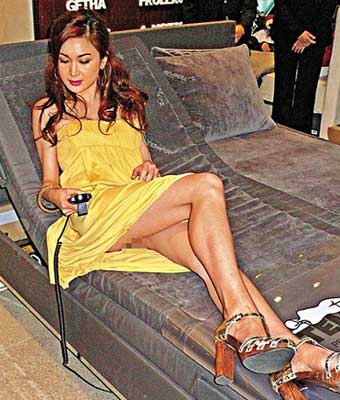 中新網(wǎng)11月7日電 美國(guó)小天后Britney Spears(布蘭妮)去年被拍到?jīng)]穿內(nèi)褲成為全球一時(shí)熱話;沒料到“海潮”溫碧霞也有驚人之舉,繼以41歲之齡拍攝終極噴血寫真集后,昨日她穿招牌露肩連身短裙出席床褥宣傳活動(dòng),其間躺電動(dòng)床上扭腰大擺造型時(shí),懷疑下身真空的她不慎春光乍泄,但事后她卻堅(jiān)稱自己有穿內(nèi)褲。