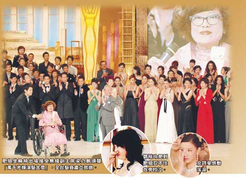 而肥姐沈殿霞自去年9月發(fā)現(xiàn)肝臟有6磅腫瘤后,病情反復(fù),無(wú)奈暫停演藝工作靜心在家休養(yǎng),積極對(duì)抗病魔。從事演藝工作40多年,肥姐貢獻(xiàn)良多,有“開心果”之稱。昨晚無(wú)線于《萬(wàn)千星輝頒獎(jiǎng)典禮》特別頒發(fā)“萬(wàn)千光輝演藝大獎(jiǎng)”給肥姐作表?yè)P(yáng),她親自出席領(lǐng)獎(jiǎng),全體臺(tái)前幕后及觀眾站立致敬,掀起整晚高潮。坐在輪椅的肥姐精神不俗,以堅(jiān)定口氣說(shuō):“我不會(huì)輕易放棄我喜歡的電視事業(yè)!辈簧偎噯T看到肥姐都忍不住感觸落淚,在喜悅背后帶點(diǎn)傷感。