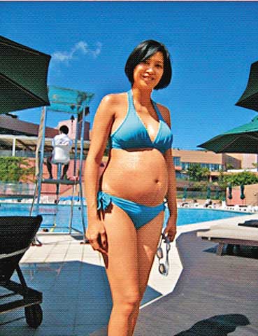 據(jù)報道,盧淑儀生產(chǎn)前效法不少外國女星般拍攝大肚泳衣照,她在7月27日的網(wǎng)志中,張貼自己在泳池邊拍攝的三點式照片!班耍业暮糜,來看看我的寶貝越來越大,好開心!”其后又在10月10日貼上另一幀大肚照,即將生產(chǎn)的她用尺量腰圍,并指腹大便便的肚子說:“我的腰圍43吋!”