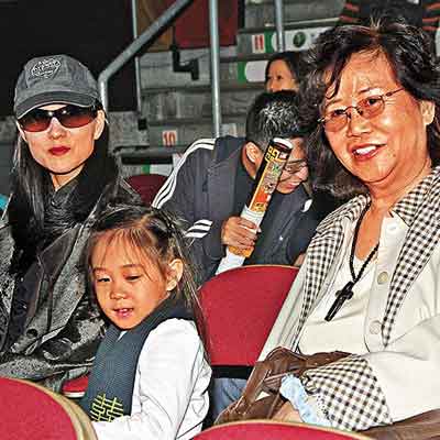 利智(左)帶小女兒坐在觀眾席欣賞華仔與大女兒Jane的演出。