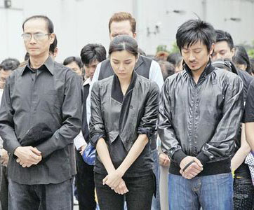 中新網5月20日電 香港無線全體演職員昨天中午于將軍澳電視城發(fā)起默哀活動,逾百位藝員及數百位職員合共500多人,齊集電視城停車場,在無線總經理陳志云帶領下,于14時28分為四川汶川大地震遇難的同胞默哀3分鐘。默哀開始不久即下起毛毛細雨,多位藝人包括關菊英、苗僑偉、蒙嘉慧、陳法拉等于默哀時不禁落淚,場面莊嚴而凄涼。