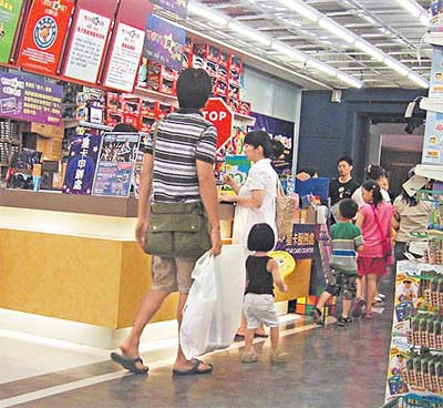 陶子(左二)埋單,小荳荳與李李仁站在一旁,她略顯福態(tài),孕味十足。