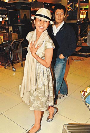 為婚禮有備而戰(zhàn)的嘉玲,前晚和偉仔到達(dá)曼谷機(jī)場(chǎng)后,由助手陪同出關(guān),一對(duì)準(zhǔn)新人心情大好,笑容滿面,其后乘坐機(jī)場(chǎng)小車出機(jī)場(chǎng),登上酒店車直駛曼谷的杰頂上魚翅大快朵頤。