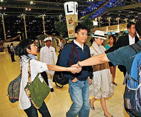 中新網(wǎng)7月18日電 梁朝偉和劉嘉玲下周一(21日)將在不丹舉行婚禮,前日(16日)他們帶著十箱行李飛赴不丹。一對(duì)準(zhǔn)新人前晚抵達(dá)曼谷時(shí)均滿面春風(fēng),并在機(jī)場(chǎng)免稅店狂買約30瓶香檳及80條香煙。看來二人的婚禮已準(zhǔn)備煙酒齊飛,向來喜歡小酌的新娘子必定不醉無歸。