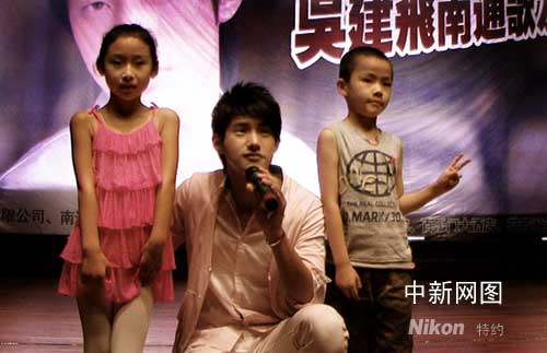 在歌友會(huì)上吳建飛演唱了《偏偏愛上你》、《你離開以后》等歌曲,還演唱了自己作詞,潘瑋柏譜曲的《手拉手》。接著又與幸運(yùn)歌迷大玩心心相印和夾乒乓球等游戲,引發(fā)現(xiàn)場(chǎng)歌迷連連尖叫。歌迷代表還貼心的送上風(fēng)箏,祝偶像一飛沖天,唱片大賣。最讓吳建飛驚喜的是現(xiàn)場(chǎng)來(lái)了2位年僅5歲的鐵桿小粉絲,居然都可以完整的演唱完吳建飛的新歌。在被問(wèn)及七夕將至有何約會(huì)時(shí),害羞的吳建飛漲紅了臉,坦言現(xiàn)忙于工作無(wú)暇去好好經(jīng)營(yíng)一段感情。反而比較期待第二天的奧運(yùn)會(huì)開幕式。說(shuō)起心目中女友的標(biāo)準(zhǔn),吳建飛表示兩個(gè)人在一起舒服就好了,但是她要顧家、體貼、溫柔,最重要是要孝順父母。