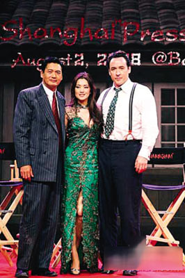 泰國(guó)當(dāng)?shù)貢r(shí)間8月2日,集合中、美、日紅星的史詩(shī)式電影《上海》(又名《諜海風(fēng)云》)在曼谷舉行記者會(huì)。片中主演周潤(rùn)發(fā)、鞏俐、約翰·庫(kù)薩克全體到場(chǎng)造勢(shì)。