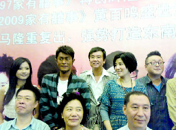 昨日下午杭州雨后天晴,如香港東方電影公司老總黃百鳴的心情,因為《家有喜事》系列電影在闊別銀幕11年之后,終于有機會制造《家有喜事2009》。昨天該片在杭州舉行了開機新聞發(fā)布會,主演吳君如、古天樂、黃百鳴、鄭中基、姚晨、郭濤等等一干明星全體出席。