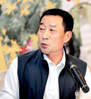 圖為李雪健在記者見面會上闡述自己的角色